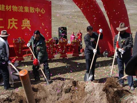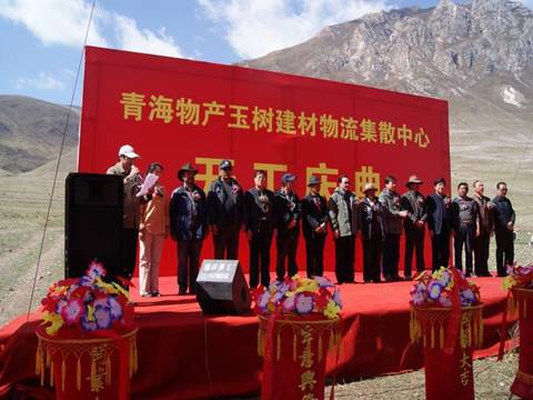省玉樹地震災后重建現(xiàn)場指揮部指揮長、副省長馬順清宣布建材物流集散中心正式開工并講話。省政府副秘書長巨偉、省經(jīng)委、省城鄉(xiāng)住房建設廳、西寧市政府、玉樹州政府相關部門、玉樹縣有關負責同志,省物產(chǎn)集團總經(jīng)理王玉輝、黨委書記白家林、副總經(jīng)理物產(chǎn)化工公司董事長耿保平等參加了開工儀式。