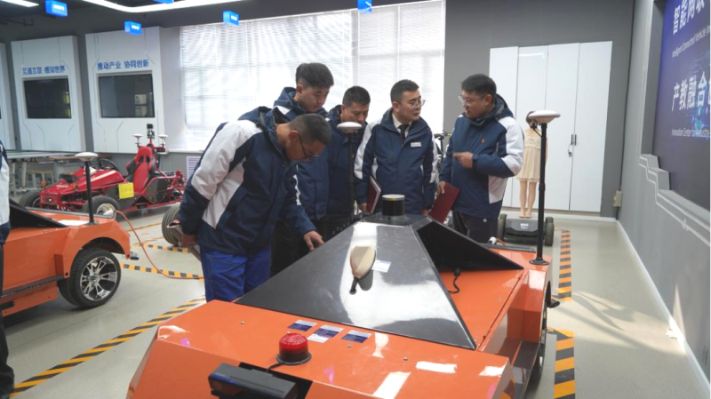 在參觀汽車專業(yè)實訓(xùn)中心時,交通運輸學(xué)院汽車系智慧互聯(lián)專業(yè)老師為支部黨員進行了精彩的現(xiàn)場授課。大家積極請教,互動交流,了解了智慧互聯(lián)交流與共享的新型模式,對生活和工作帶來便利和智能化體驗等內(nèi)容。在場認真聆聽的“物產(chǎn)工匠”石學(xué)林對近期將與高校老師組隊參加“西部陸海新通道建設(shè)全國引領(lǐng)性勞動和技能競賽”,有了新的啟發(fā)。下一步,校企雙方將會對“優(yōu)服務(wù)、壯產(chǎn)業(yè)”技能競賽項目進行深入的研究和探討,做到交流“不斷線”,學(xué)習(xí)“不停步”。